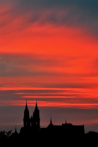 Meißen - Die Meißner Domtürme im Sonnenuntergang - Ein hochwertiges Wandbild für Ihr Zuhause oder zum Verschenken. Wählen Sie zwischen unterschiedlichen Formaten und Materialien. Zur Auswahl stehen:
