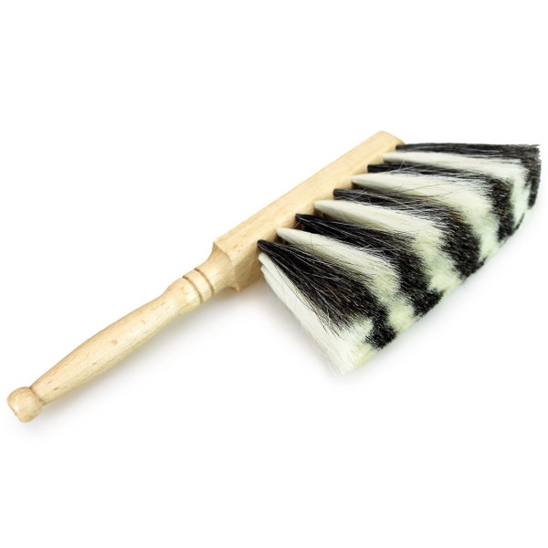 Der handgebundene, hochwertige Staubfeger aus der Bürstenmanufaktur Dresden ist aus reinem Ziegenhaar mit originellem Muster, nimmt Staub durch seine einzigartige Haarstruktur sehr gut auf und hält weitaus länger als ein Staubwedel aus Federn. Der Besenkörper besteht aus heimischen Buchenholz, ist 25 cm lang, lackiert und besitzt einen gedrechselten Griff. Perfekt zum Abstauben von Schreibtischen, Kunst und Kitsch, Möbeln, Zimmerpflanzen, Lampen, Bildschirmen und Haus-Deko.