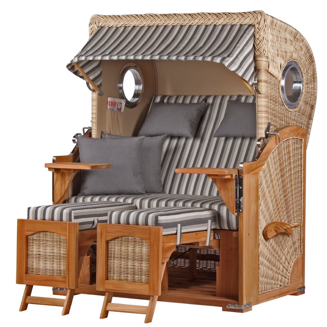 Strandkorb DÜNE - Zweisitzer - Grau gestreift - Design 01424