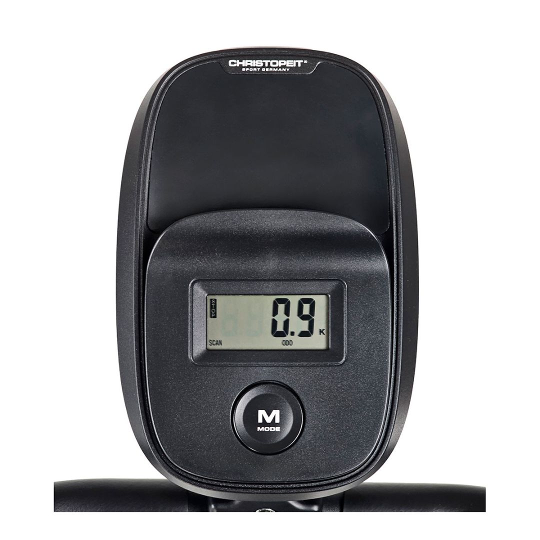 Der benutzerfreundliche Trainingscomputer zeigt alle relevanten Daten wie Zeit, Geschwindigkeit, Entfernung, Kalorienverbrauch und Pulsfrequenz an die Scan-Funktion bietet dabei einen umfassenden Überblick.