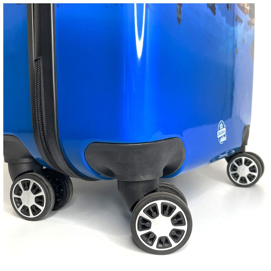 Hinweis: Bitte beachten Sie, dass die Koffer mit einer ablösbaren Schutzfolie ausgestattet sind. Diese dient nur zum Schutz der Hochglanzmotive und kann vor der Verwendung entfernt werden.